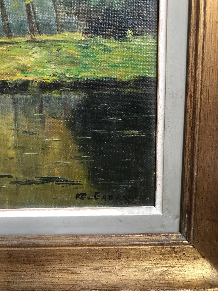 oil on hardboard; signed lower right